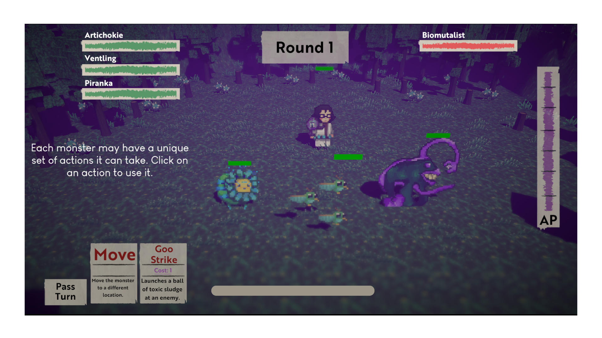 In this game, players fight in a pixelated turn based combat video game within the world to save humanity! Our dedicated game design team has meticulously crafted a game that's both intuitive and visually appealing, ensuring an engaging and seamless experience in a 2D/3D game format (similar to the Octopath Traveler franchise). Every character and monster is animated with dynamic movements, making your interactions feel immersive.