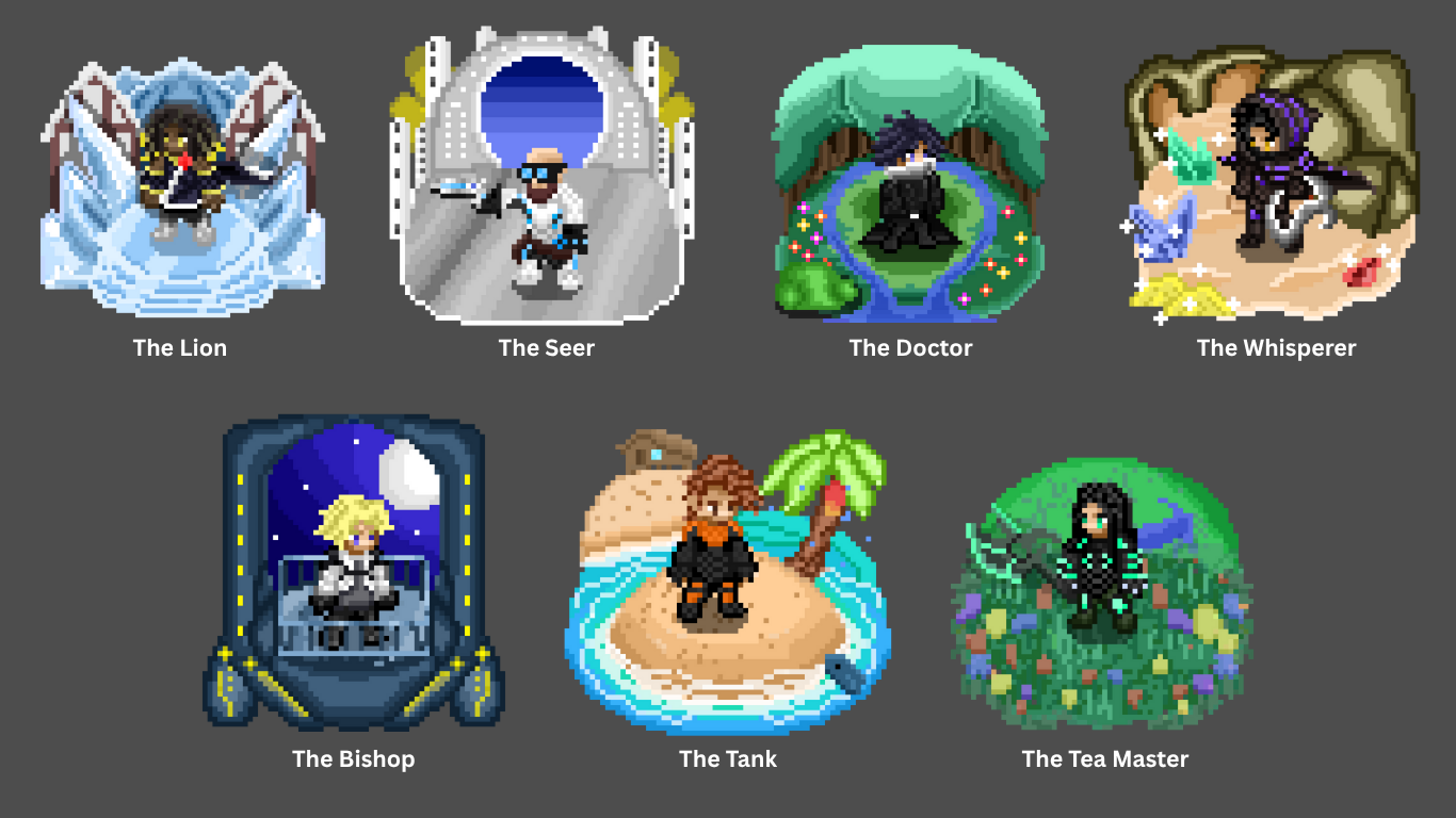 When we brought The Seventh Kingdom into game form, one of the most exciting parts was adapting the story’s legendary Seven Comrades into game characters. Each one comes with their own style and personality as well as different regions they hail from. Assets were made using softwares such as: Aseprite, Procreate, and Adobe Photoshop.